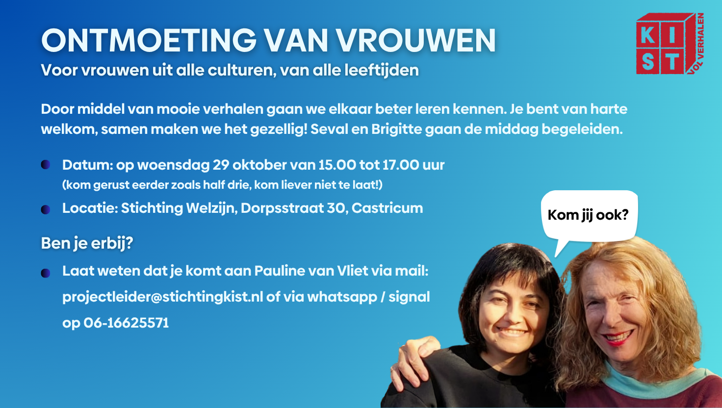 Hoe kan ik mij aanmelden? Stuur een mail naar info@stichtingkist.nl